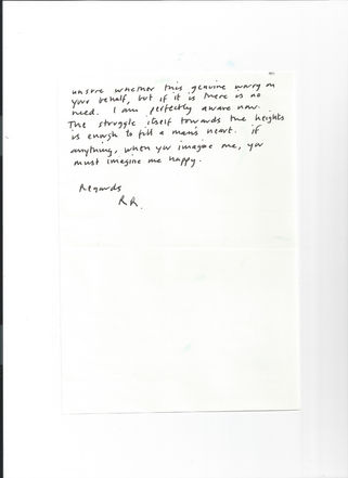 This is a letter from Tithonus Cogent, the only person we know Rote contacted during his final years. Cogent had been Rote’s dealer since 1977, when he bought the whole contents of the Aureole collective’s first group show 'The Periphery', turning them into an overnight success. He never revealed Rote’s location as promised, despite many pleas and monetary offers from individuals in the art community. Cogent sent over 800 letters to Rote and kept a fastidious record of each one. A few days after Rote’s death he published a book of these letters alongside his personal thoughts on Rote’s significant artistic change called ‘My companion Rote’, detailing the relationship between them. He still has in his possession Rote’s three final letters, which have not yet been published.